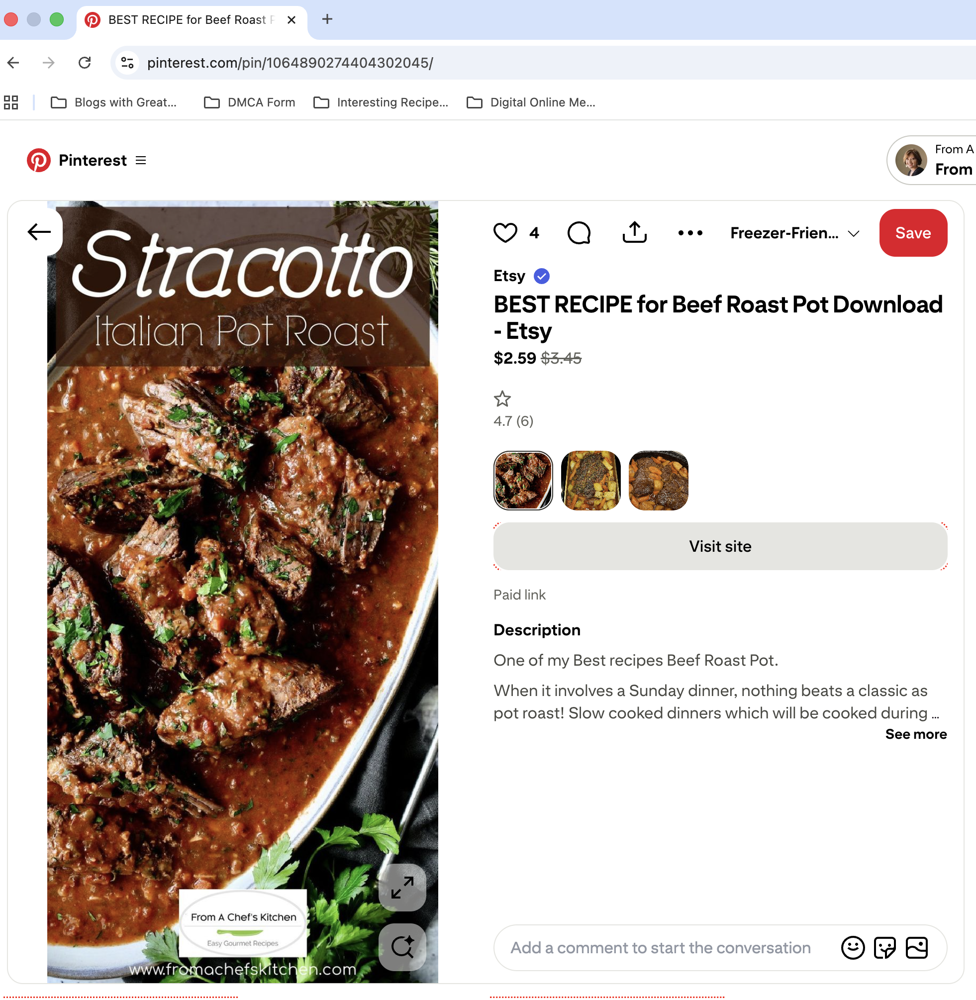 AI sloppers are now selling recipes there that you can get for free from thousands of real food bloggers. Many are stolen from real food bloggers, like my Italian Pot Roast recipe. It’s free here, but on Etsy, you’ll pay for it. And yes, there’s a sucker born every second because people actually pay for them.