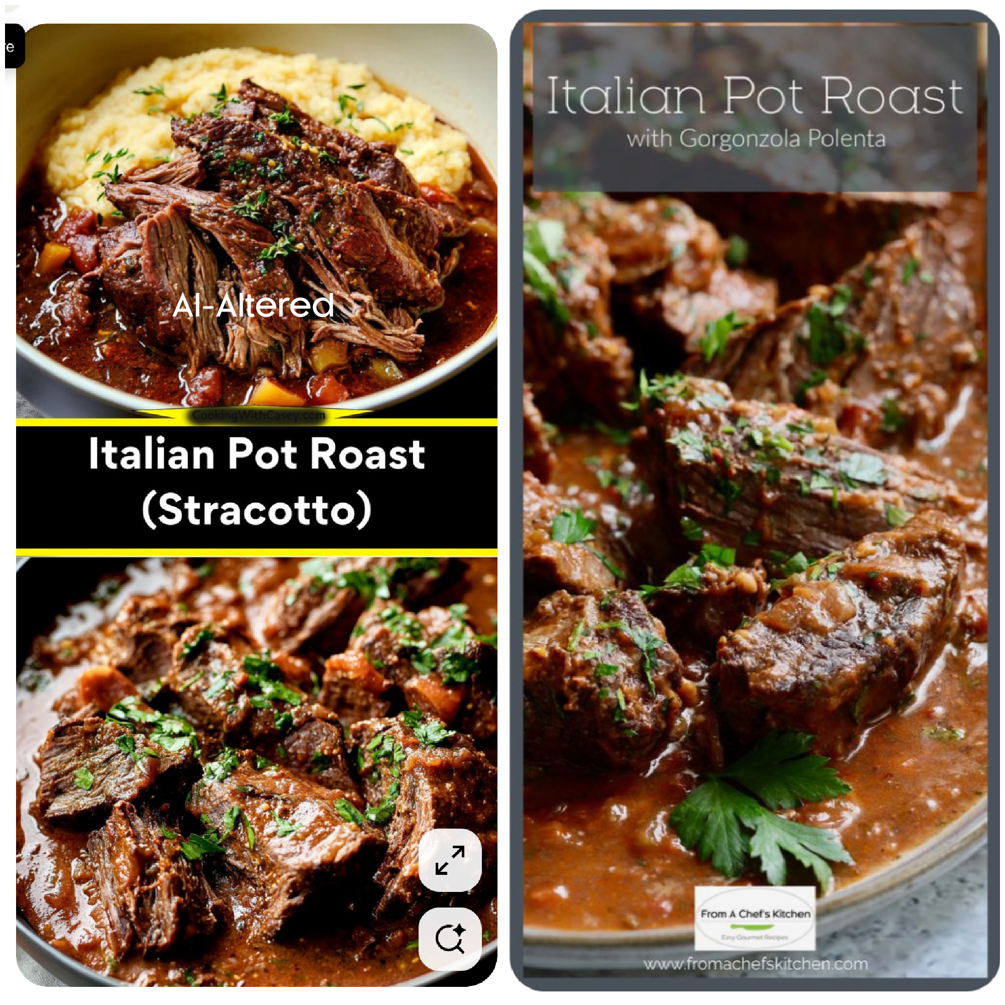 Carole, this article is so disturbing. As a person who cooks every night and hosts family dinners every Sunday evening, I’m always on the lookout for new recipes to try. This morning while I was looking at Pinterest & Facebook…Wow…all your red flags just jumped out at me. It’s all there in plain sight. I have been making your Stracotto with Gorgonzola polenta for years and have passed the recipe onto friends. The fact that this recipe has been stolen from you must make you livid. Thank you again so very much for researching and posting this necessary article. My radar is up and I hope everyone who researches recipes online sees this. Facebook, instagram, Pinterest are fast becoming a big waste of time.