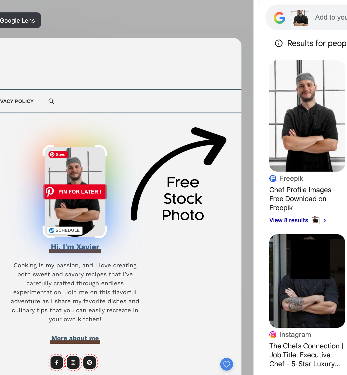 - They’re using a stock photo of someone. Ol’ “Xavier” here is a stock photo from Freepik as revealed by Google Lens.