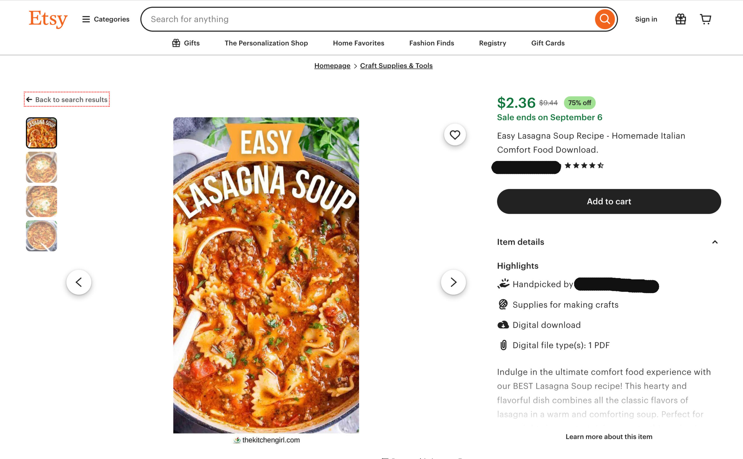 AI sloppers are now selling recipes there that you can get for free from thousands of real food bloggers. Many are stolen from real food bloggers, like my Ratatouille recipe. It’s free here, but on Etsy, you’ll pay $2.99 for it. And yes, there’s a sucker born every second because people actually pay for them.