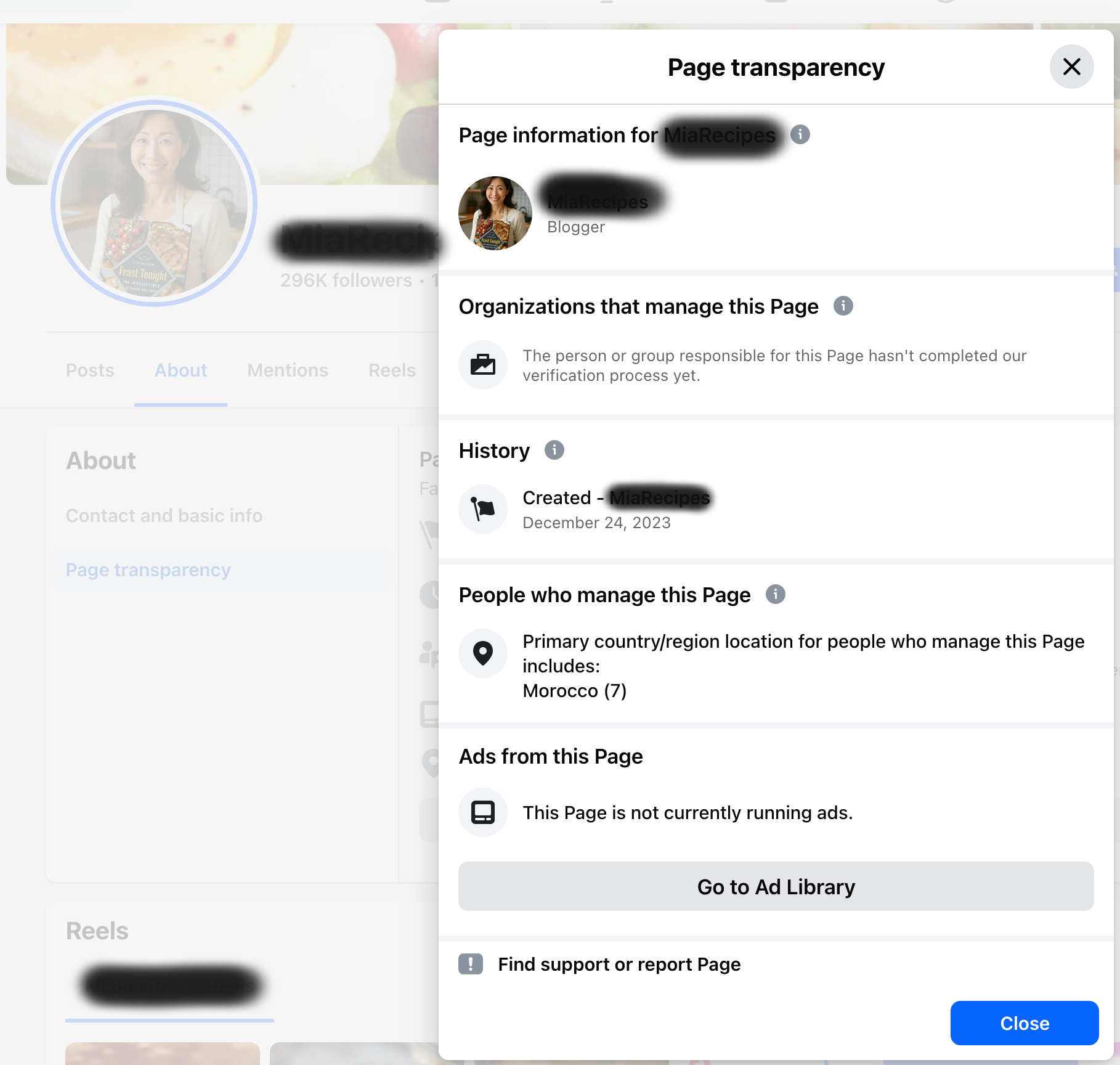 - Then there’s this popular page with 169,000 followers. The “Page Transparency” shows that the page originated in Morocco and Turkey.