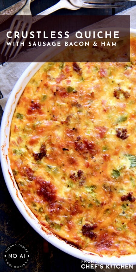Crustless Quiche with Sausage Bacon and Ham