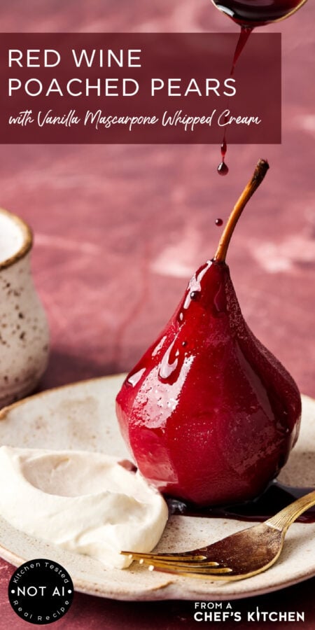 - Serve the poached pears with a generous dollop of Vanilla Mascarpone Whipped Cream.